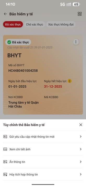 VNeID lấy thời hạn thẻ BHYT năm 2026 trong cơ sở dữ liệu