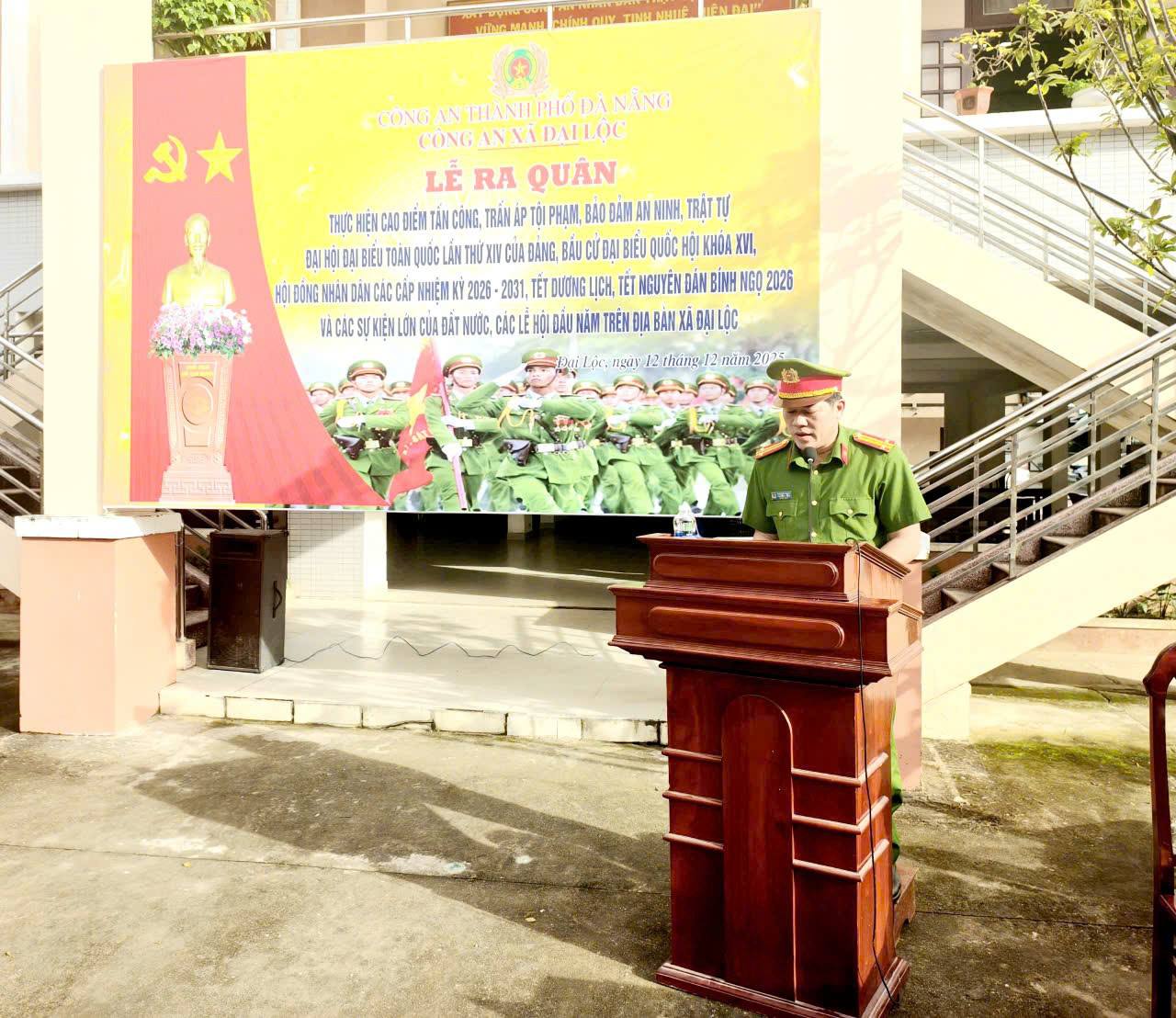 Sáng ngày 12.12, Công an xã Đại Lộc ra quân thực hiện cao điểm tấn công trấn áp tội phạm, bảo vệ ANTT Đại hội đại biểu toàn quốc lần thứ XIV của Đảng, bầu cử Đại biểu quốc hội và HĐND các cấp nhiệm kỳ 2026-2031, Tết Dương Lịch, Tết Nguyên đán Bính Ngọ 2026