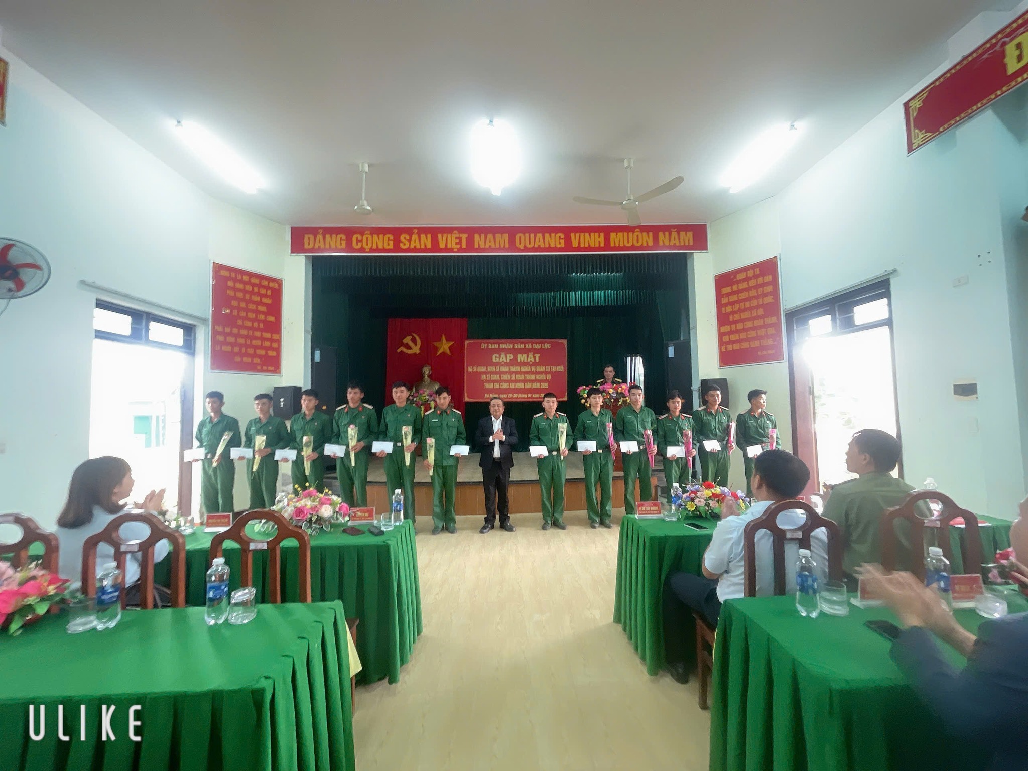 Tham dự buổi gặp mặt có đồng chí Nguyễn Hảo, Bí thư Đảng ủy, Chủ tịch HĐND xã; đồng chí Lê Đỗ Tuấn Khương, Phó Bí thư Đảng ủy, Chủ tịch UBND xã, cùng lãnh đạo các cơ quan, Mặt trận và đoàn thể xã.