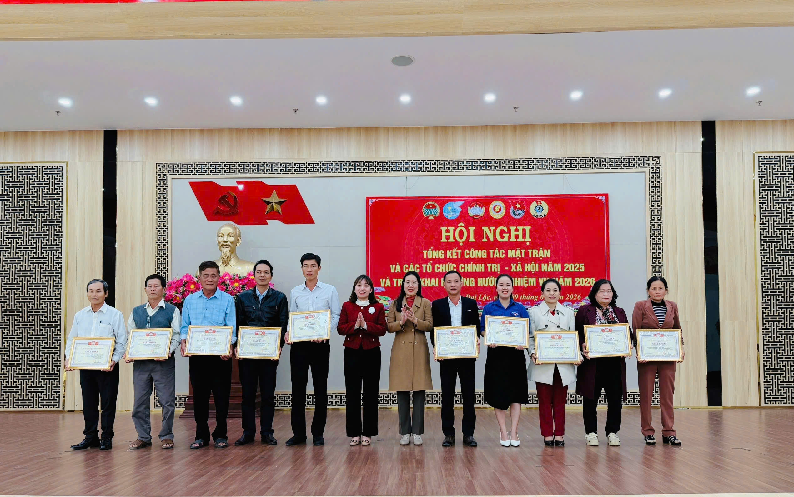 Tại hội nghị, Ủy ban MTTQ Việt Nam xã Đại Lộc đã trao Giấy khen cho 50 tập thể, 60 cá nhân có thành tích xuất sắc trong công tác Mặt trận năm 2025.